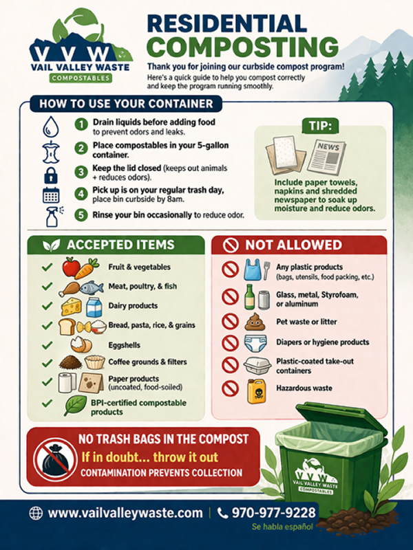 Our compost program allows residents to divert food scraps and organic waste from the landfill by placing them in a designated compost container for collecton.